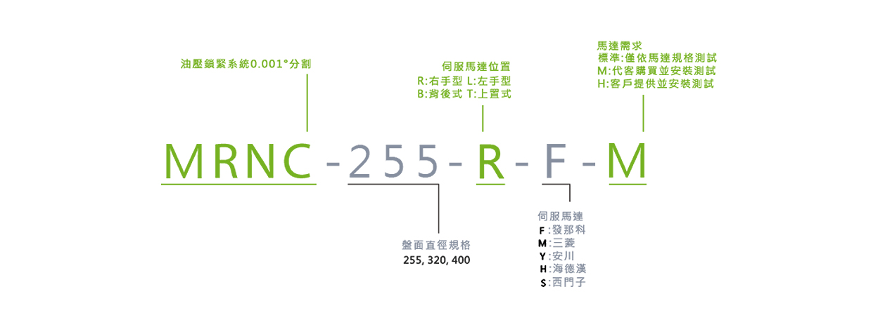 | 旋台重量(不含伺服馬達) | kg | 93 | 174 | 262 | 458 | 800 | ||